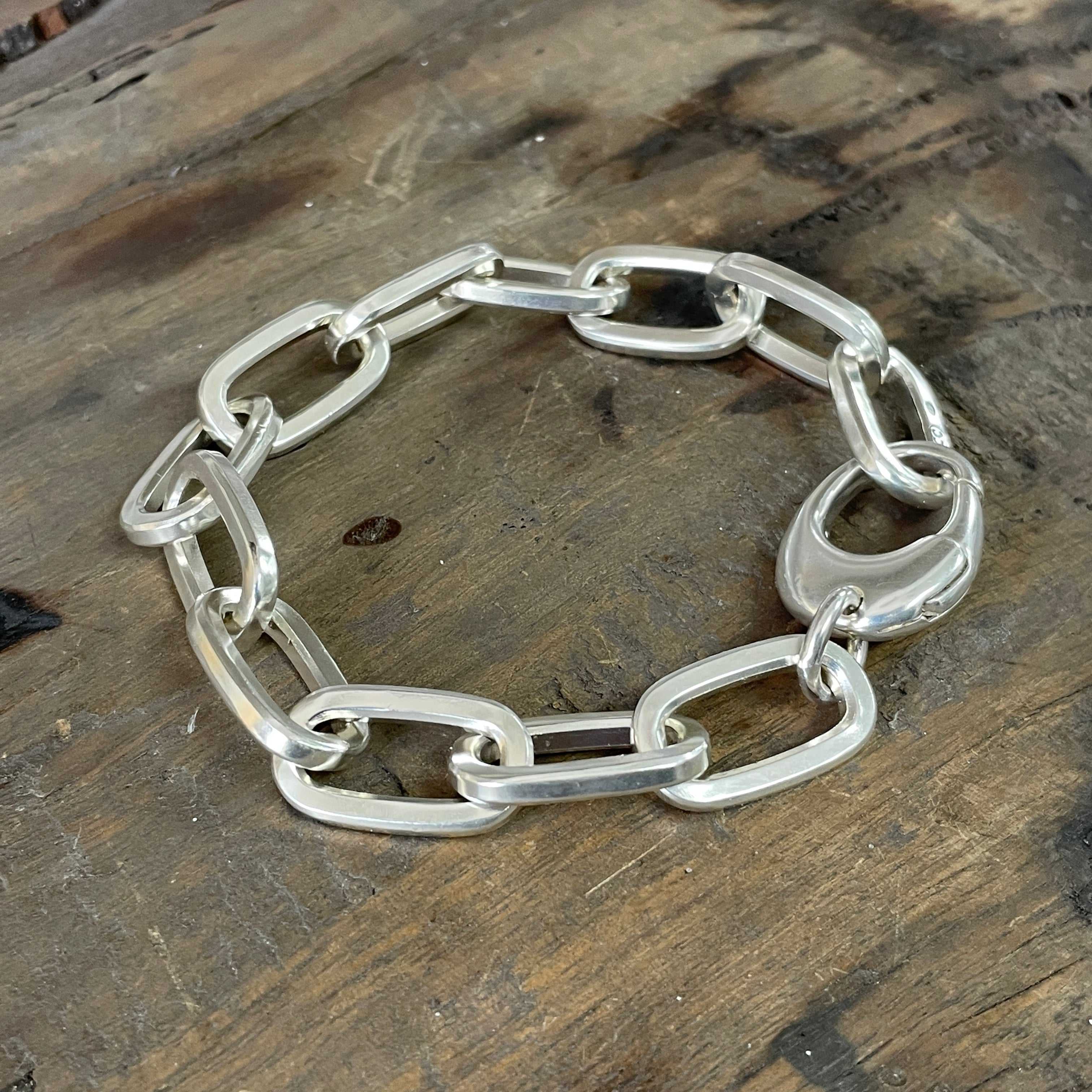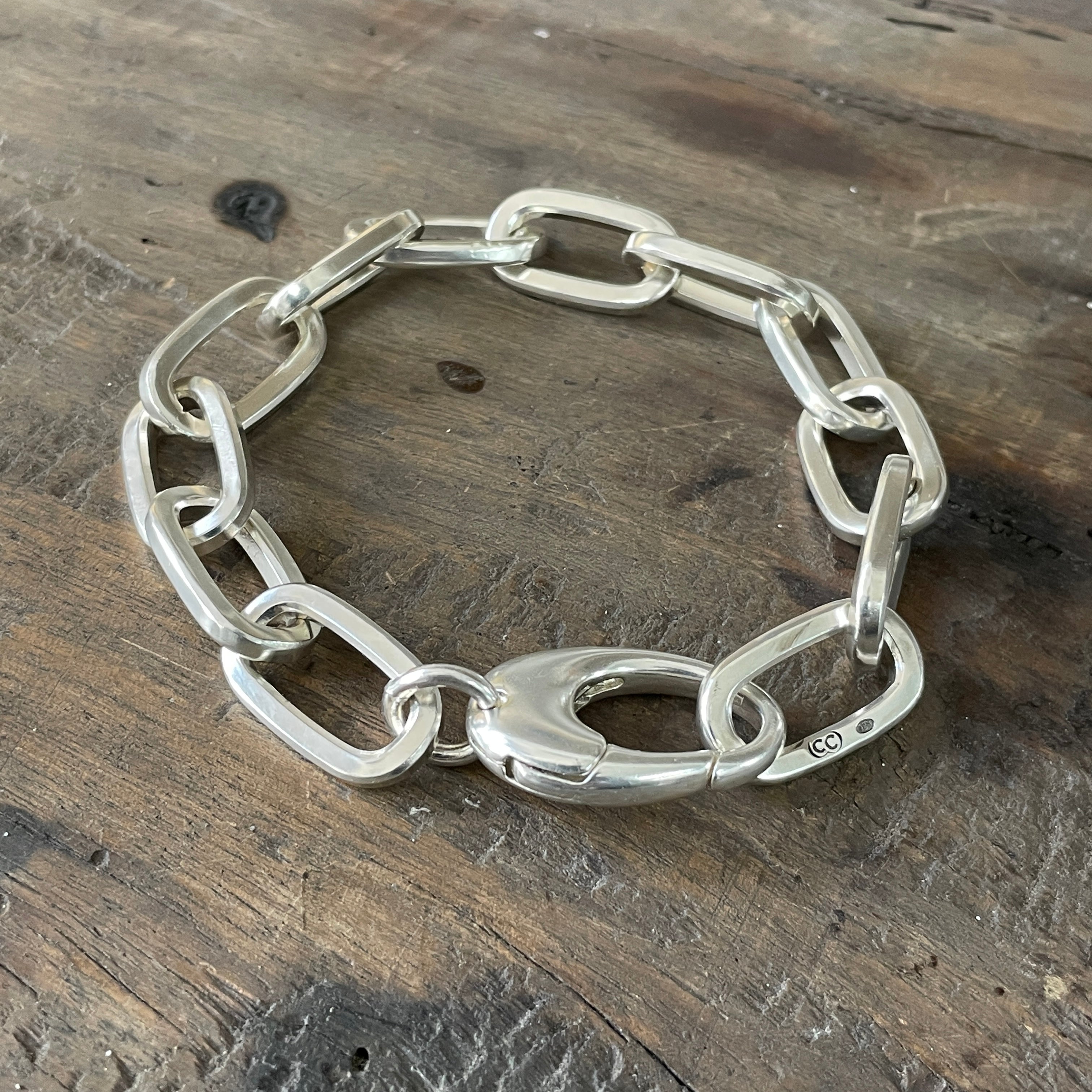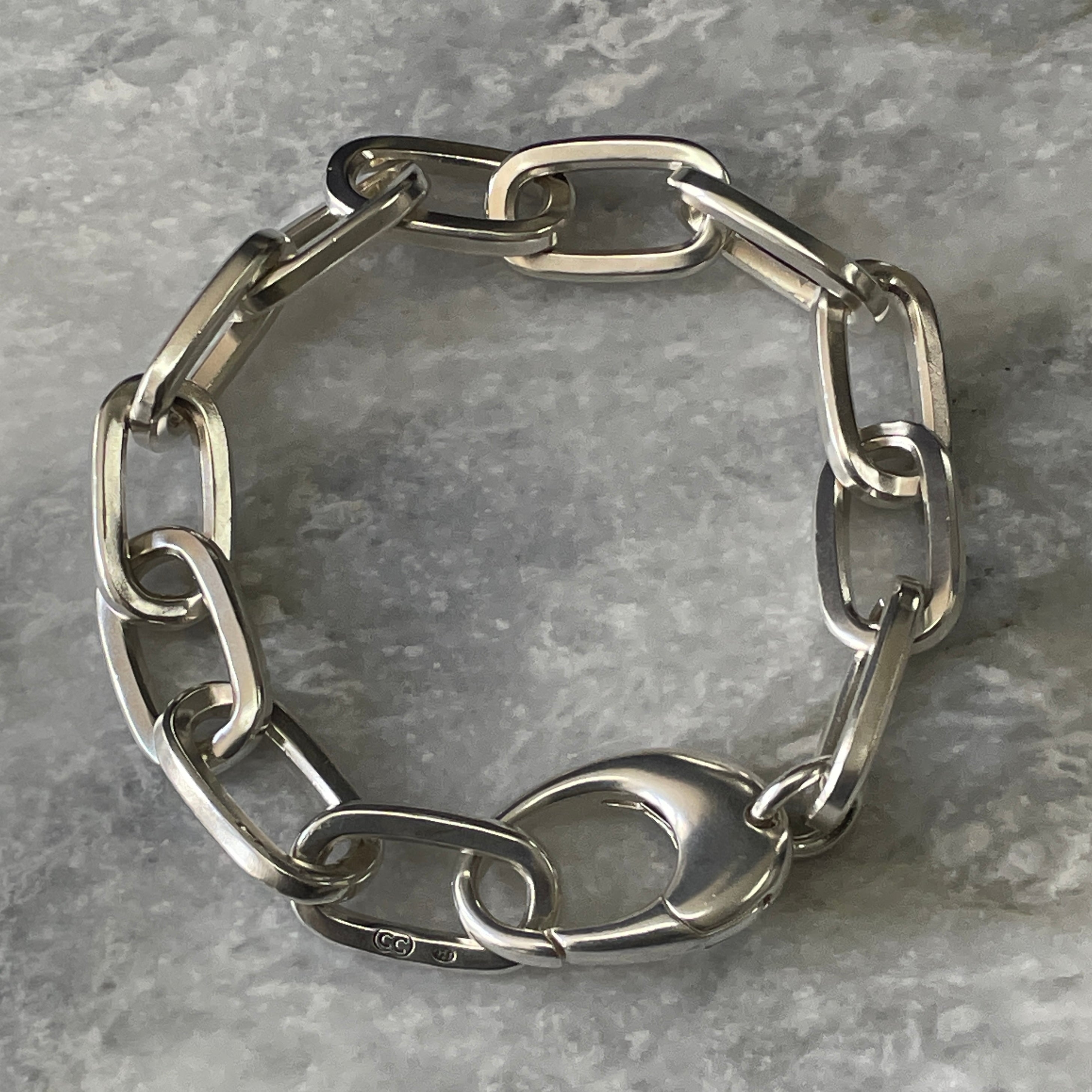 Our sterling silver chunky square cable bracelets are custom-made to order in our Melbourne workshop; link by link...