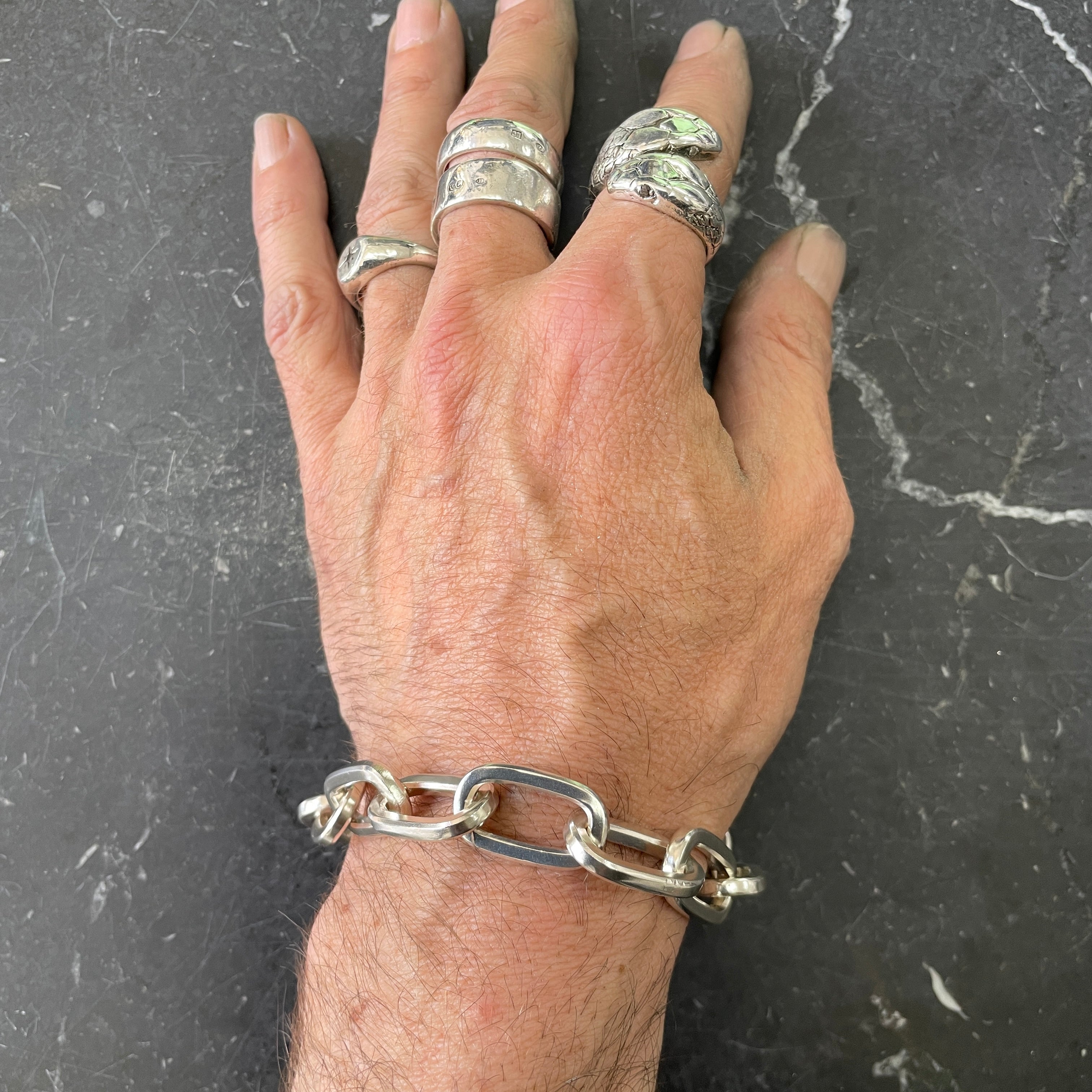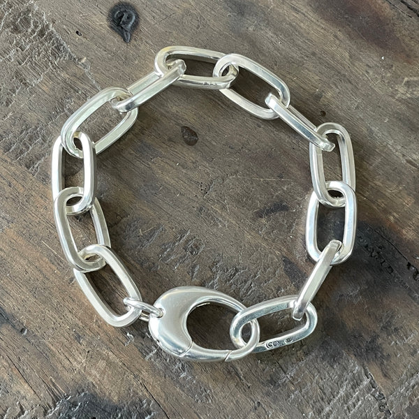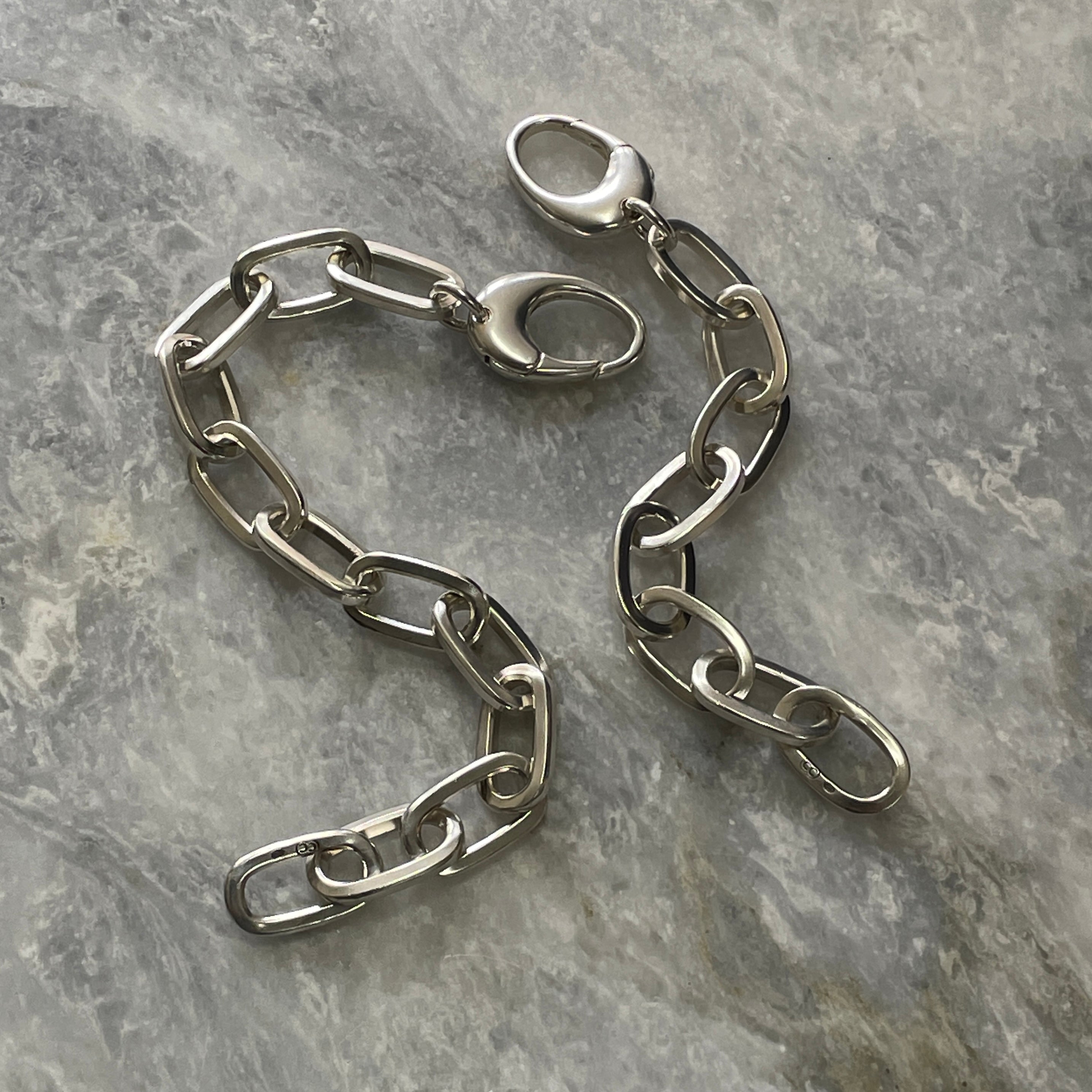 Our sterling silver chunky square cable bracelets are custom-made to order in our Melbourne workshop; link by link...
